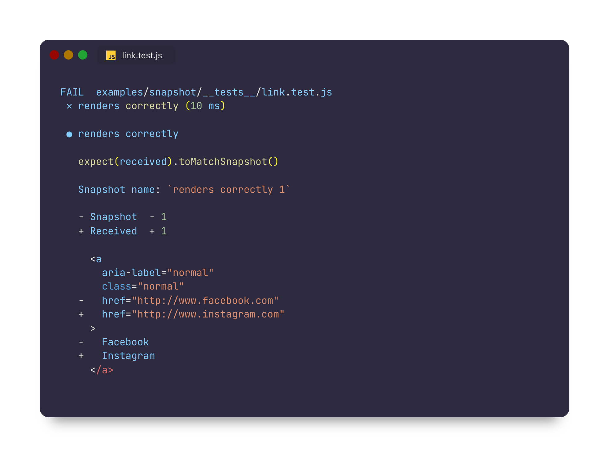 In that case, Jest will print this output:
