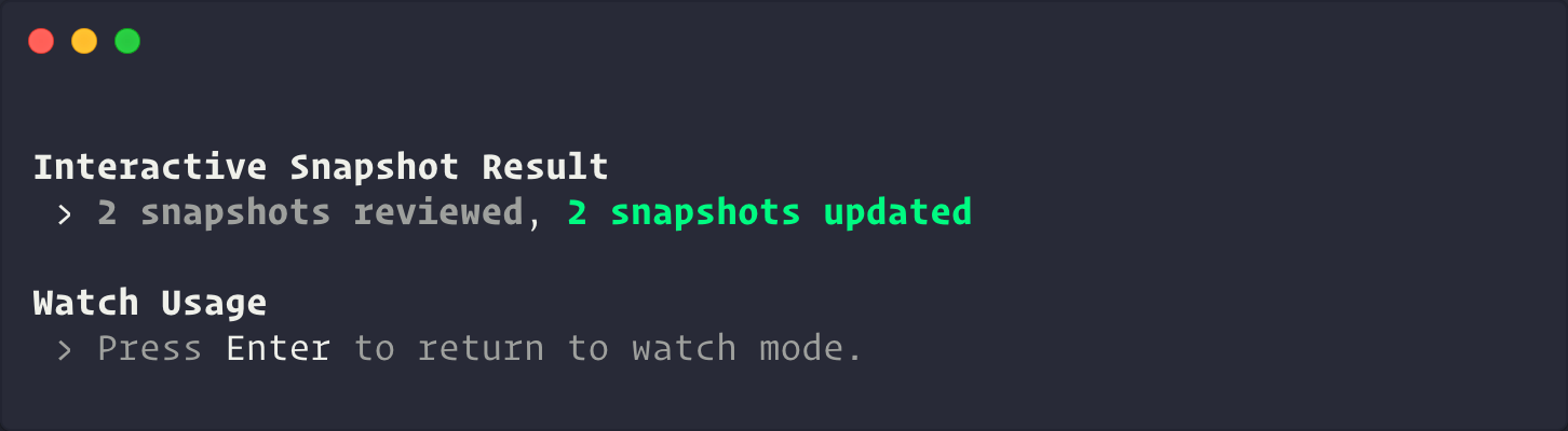 Failed snapshots can also be updated interactively in watch mode: